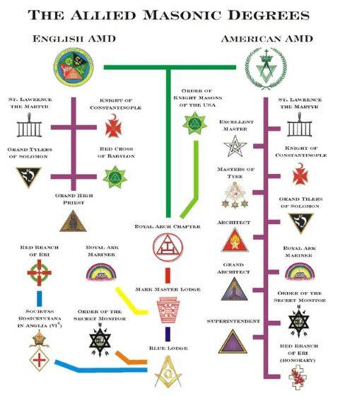 The Allied Masonic Degrees are an invitational organization and requires membership in the Royal Arch as well as the Symbolic Lodge. Membership is limited to 27 members per council. Below is the Structure of AMD.